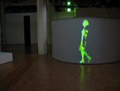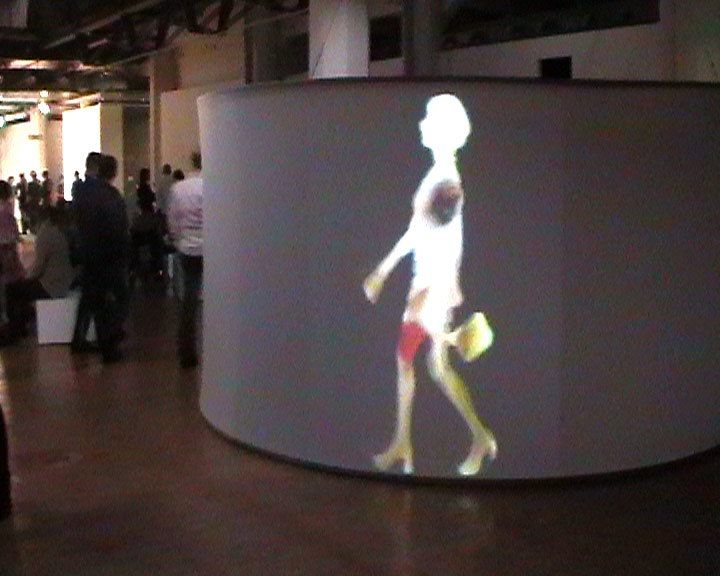 "Artificial Kiss", 2004 Center for Art and Media ZKM Karlsruhe, Germany (cylindrical video-installation / sound, colour room ca. 400 x 200 cm)
