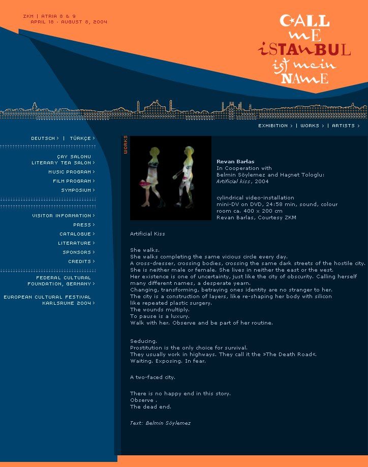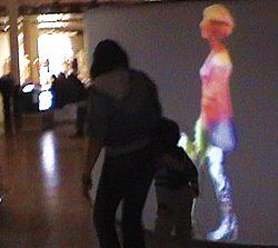 "Artificial Kiss", 2004 Center for Art and Media ZKM Karlsruhe, Germany (cylindrical video-installation / sound, colour room ca. 400 x 200 cm)